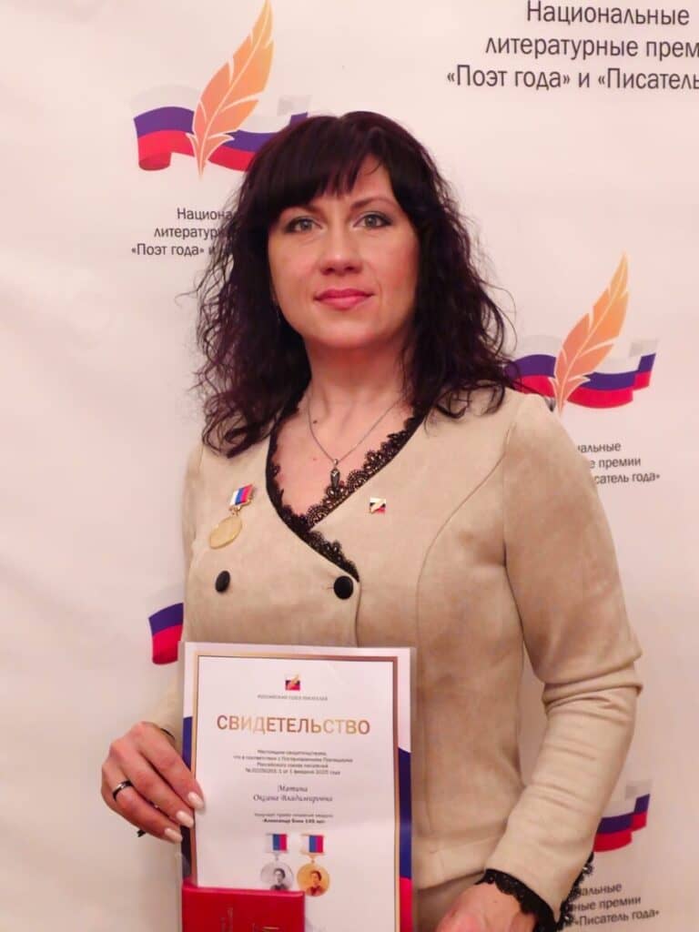 21.03.2025 во Всемирный день поэзии поэту Оксане Матиной вручили медаль «Александр Блок 145 лет». Медаль вручалась номинантам национальной литературной премии «Поэт года» за вклад в литературу.